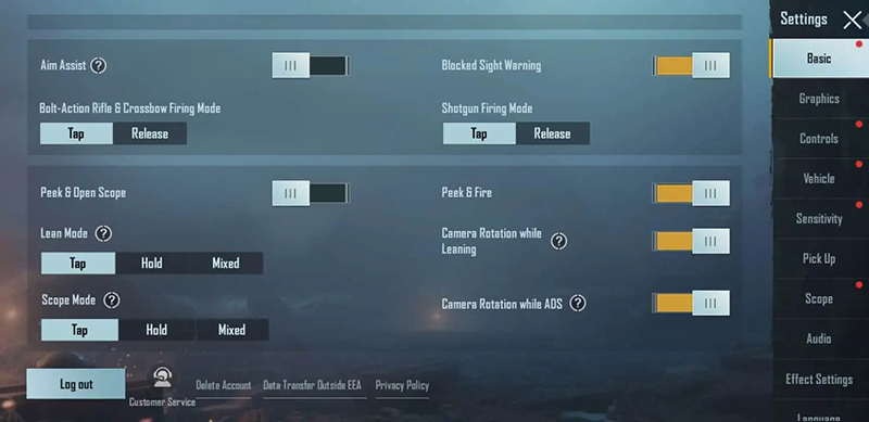 - گزینه های Lean mode و Scope را روی حالت Tap تنظیم کنید تا کنترل حرکات و تیراندازی شما در بازی بهینه شوند.